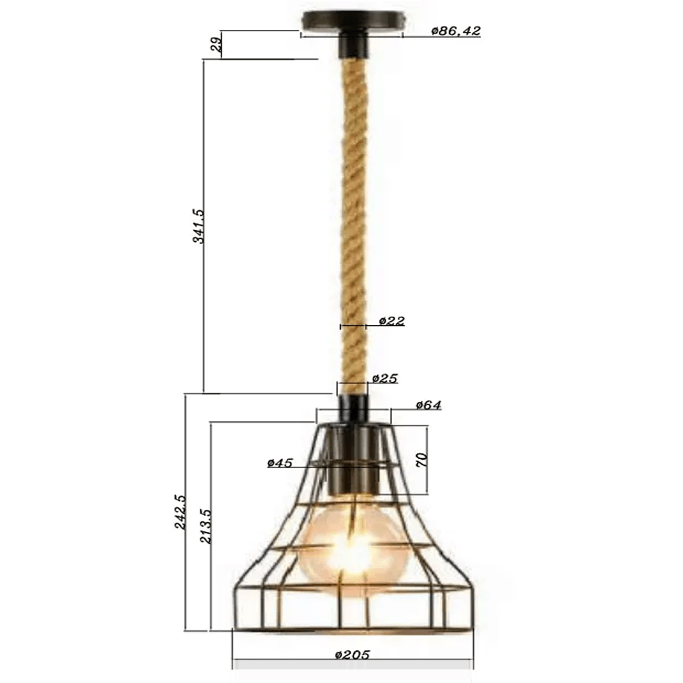 BARN E26orE27 | product sizes: 210mm x 210mm x 600mm | iron shade | coated iron and straw base | pendant light
