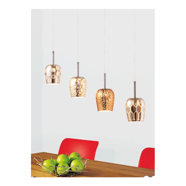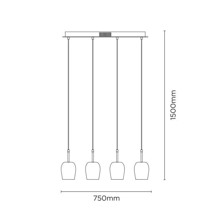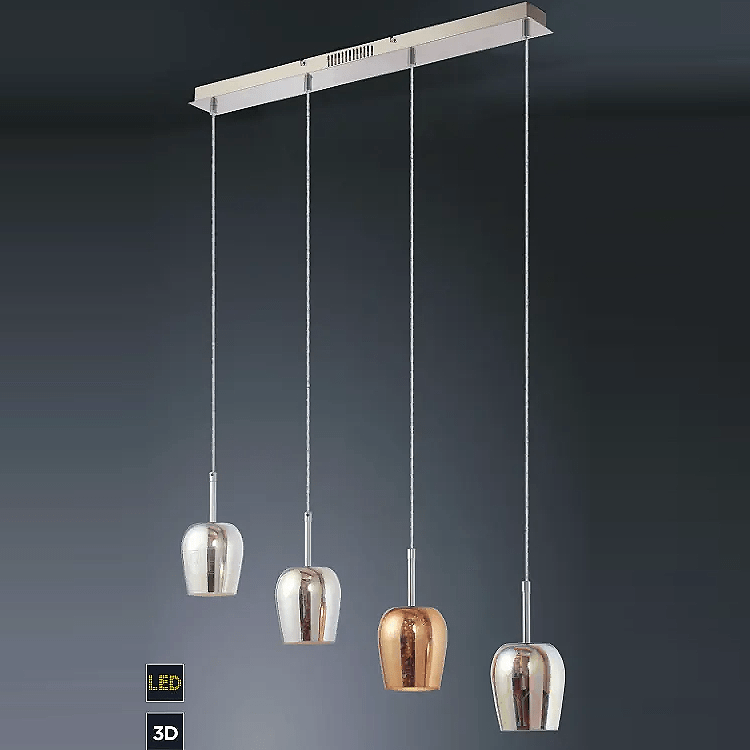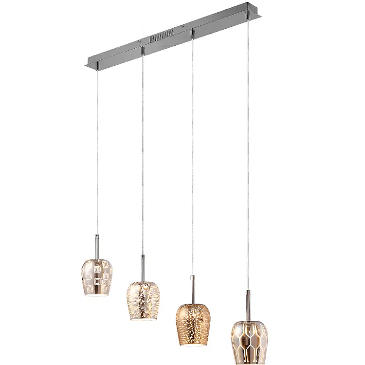 CHIMES 4xE14 LED 4W | product sizes: 750mm x 80mm x 1500mm | glass shade | chrome base | pendant light