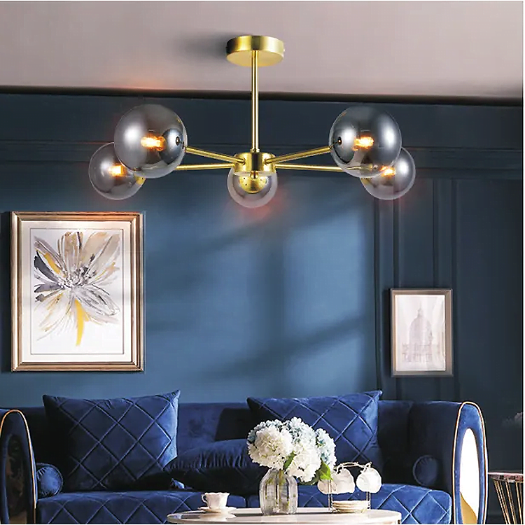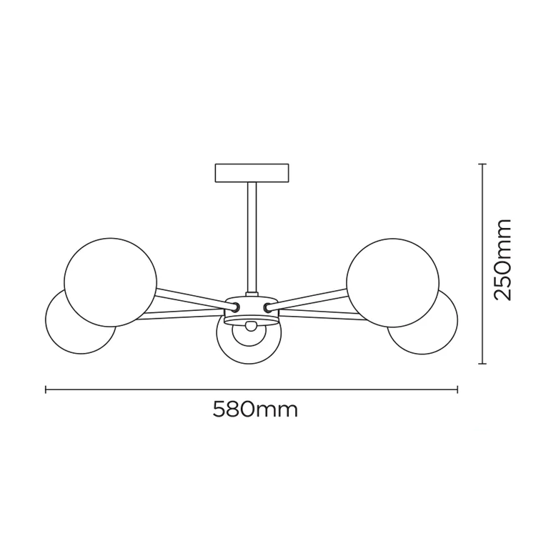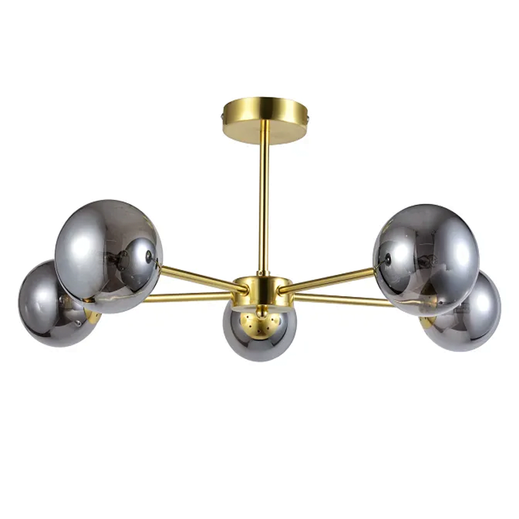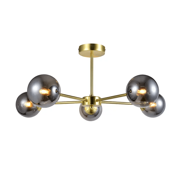 NEW ELEMENTS | 5xG9 LED 3W | product sizes: 580mm x 580mm x 250mm | smokey glass shade | brass plated base | ceiling light