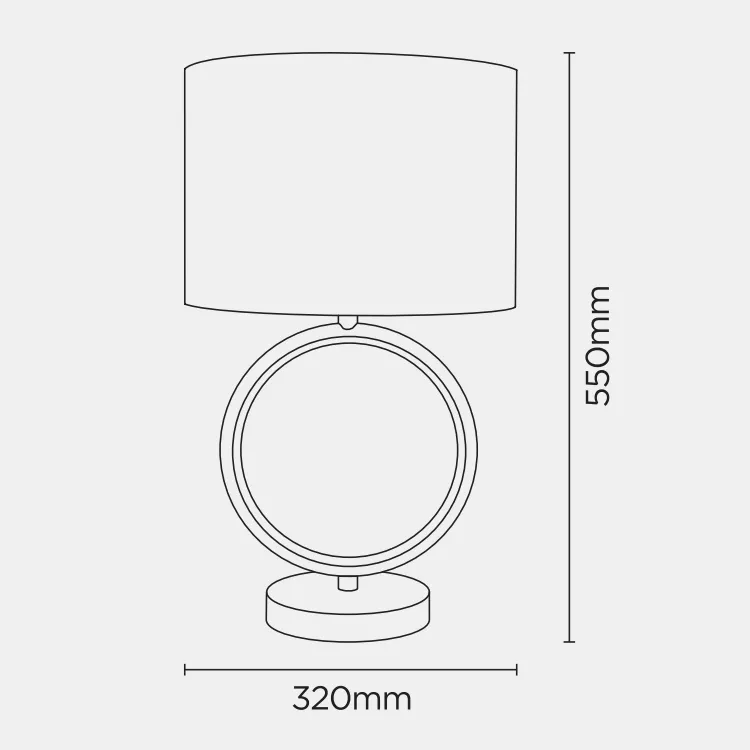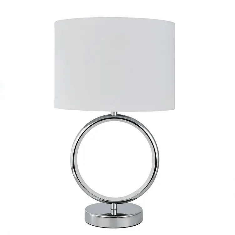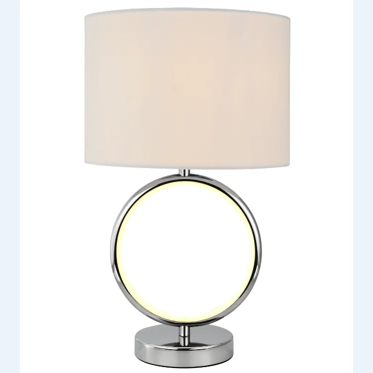 of THE RING | LED 6W n E27 5W | product sizes: 260mm x 260mm x 435mm | linen shade | chrome base | table light